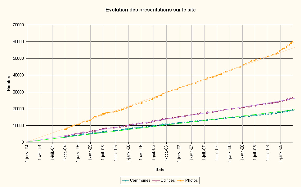 Les courbes d'évolution des communes et des édifices sont d'une stabilité absolue, avec une légère accélération sur les trois derniers mois qui sera vite résorbée aux beaux jours ! Par